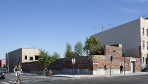 The project is in Bushwick, Brooklyn, an industrial neighborhood known for its street art. We spoke to local artists, vandals, renegades, and benefactors. We hope that this construction honors the artist spirit of the place. The wall feels like it could have been there for a long time. Our role was a moment in time in a project that explores time and expresses itself as a part of continued history.