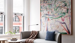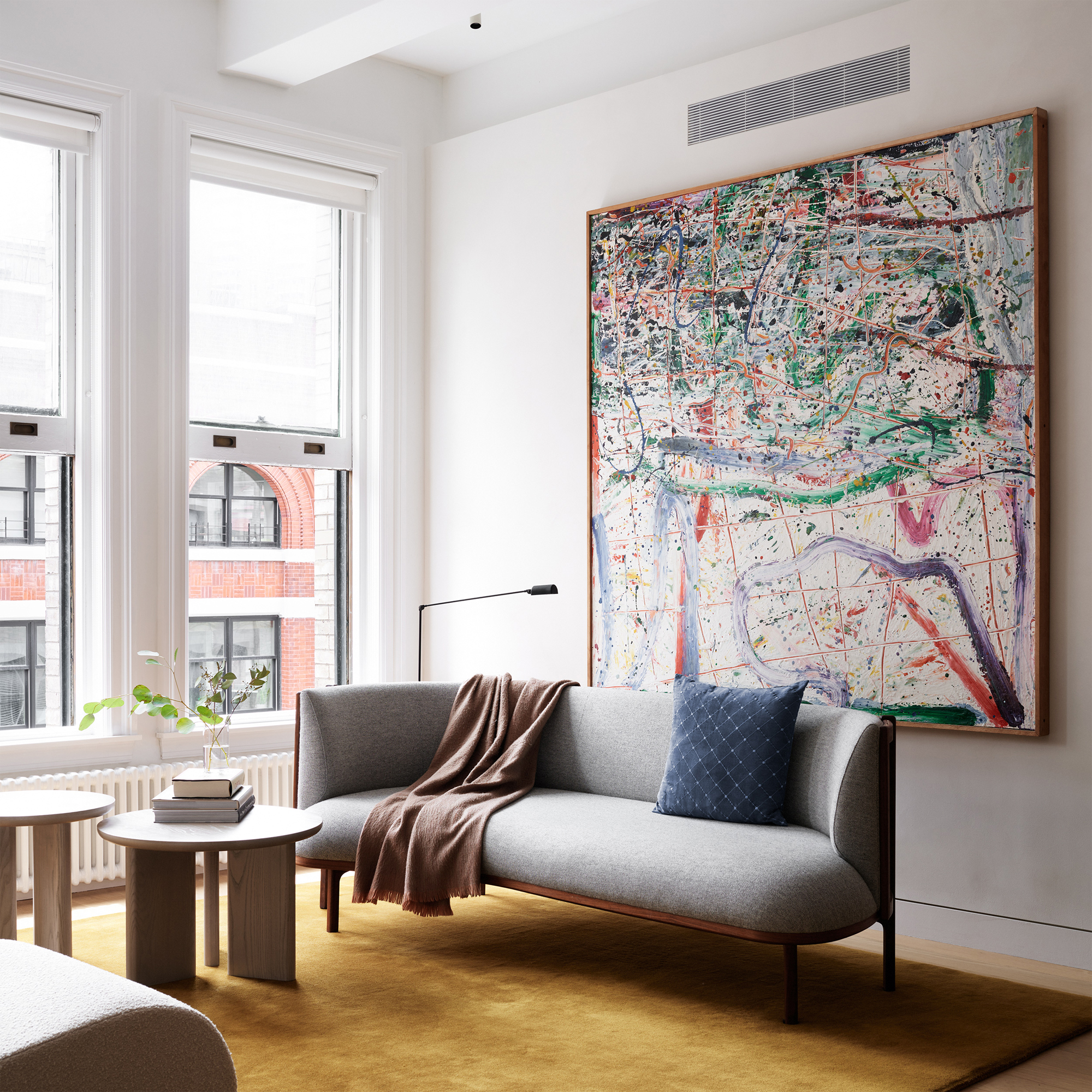 This apartment presented a distinctive design challenge: at just 1,000 square feet, it needed to house a family of four while preserving the openness and character of a loft. When purchased, the unit remained largely in its original condition as a raw artist’s studio. To maximize space, the galley kitchen was placed within a circulation zone—eliminating underutilized hallways and allowing the space to serve multiple functions—while also accommodating the building’s requirement that plumbing be confined to the single allowable “wet zone.” This move created a generous living and dining area and positioned the kitchen as the central spine of the home.