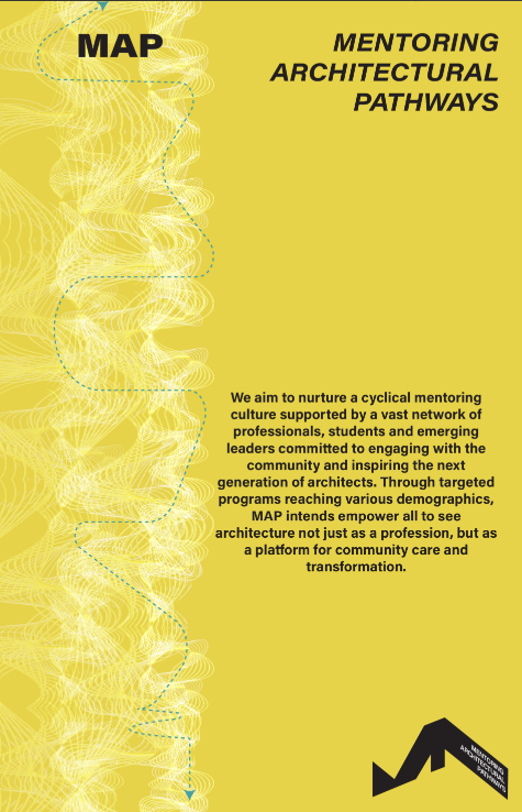 Program Purpose: MAP builds an annual cycle of mentorship cohorts beginning each Spring. Participants progress through guided stages of professional development, leadership training, and peer learning – culminating in a collective service project showcased during Architecture Week. These projects highlight the stories, challenges, and achievements shared throughout the year, reinforcing the program’s commitment to visibility, equity, and community impact.